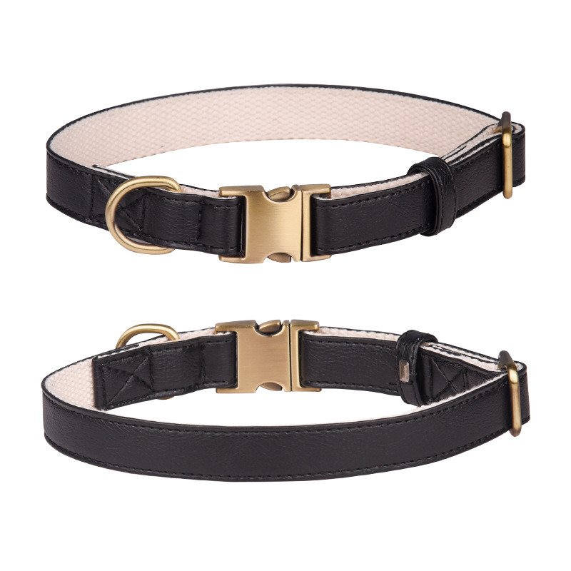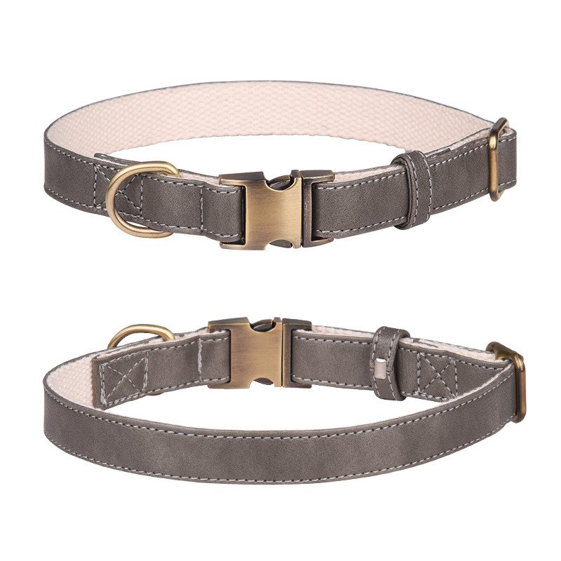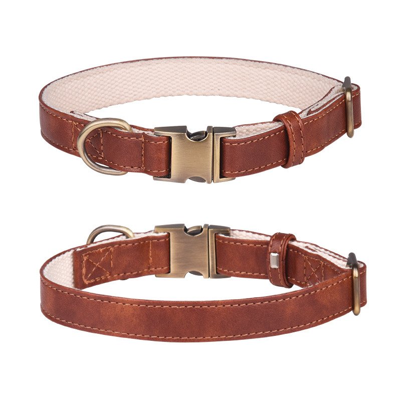 [Premium Material]Made of premium tough Leather fabric; add soft and comfortable padded inner; this material is durable; fast dries; flexible and soft; which could absorb the shock when wearing or pulling and don't harm your pet's skin [Durable Metal Buckle]Dog collar with durable metal buckle that is easy to put on and take off; thick welded D-ring provides safe attachment point for your leash. The small D-ring is specifically designed for the purpose of attaching dog charms; tags; pendants or accessories [Design]Our dog collar with leather style grain and rich attractive colors to create the perfect combination of durability and design aesthetics. SUFEI leather dog collar is a perfect combination of style; high quality and comfort. These leather collars for all breeds are comfortable; lightweight; pliable and elegant [Classic Color]This classic colors will make your dog look more fashion and stylish; perfect for our daily activities with our pets out; such as walking; running; training or hiking