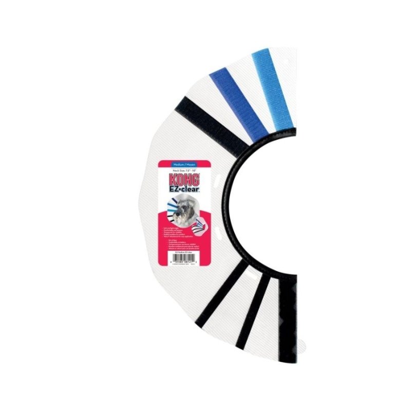 KONG EZ Clear Elizabethan Collars area safe and humane method of preventing animals from aggravating a healing wound or injury. KONG Pet EZ Clear Collars are sturdy, yet lightweight and transparent for visibility.