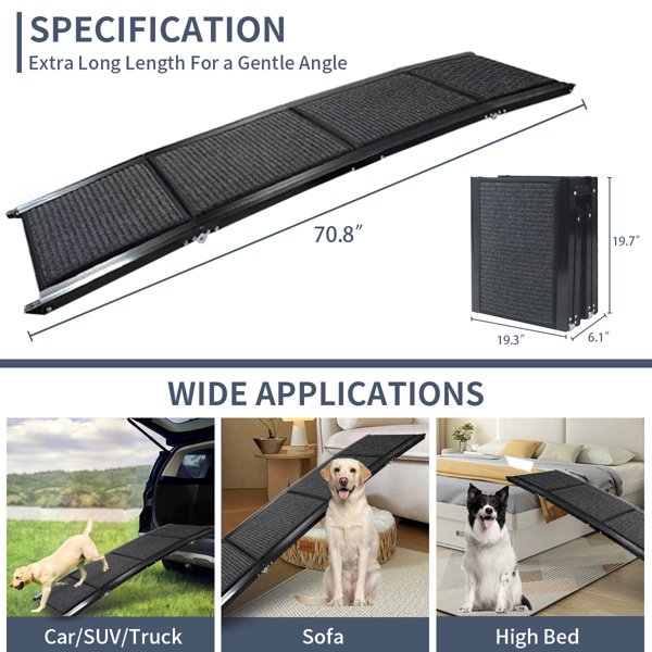 Dog Ramp for Car, 71" Long & 20" Wide Folding Portable Pet Stair Ramp with Non-Slip Rug Surface Dog Ramp for Car, 71" Long & 20" Wide Folding Portable Pet Stair Ramp with Non-Slip Rug Surface Dog Ramp for Car, 71" Long & 20" Wide Folding Portable Pet Stair Ramp with Non-Slip Rug Surface