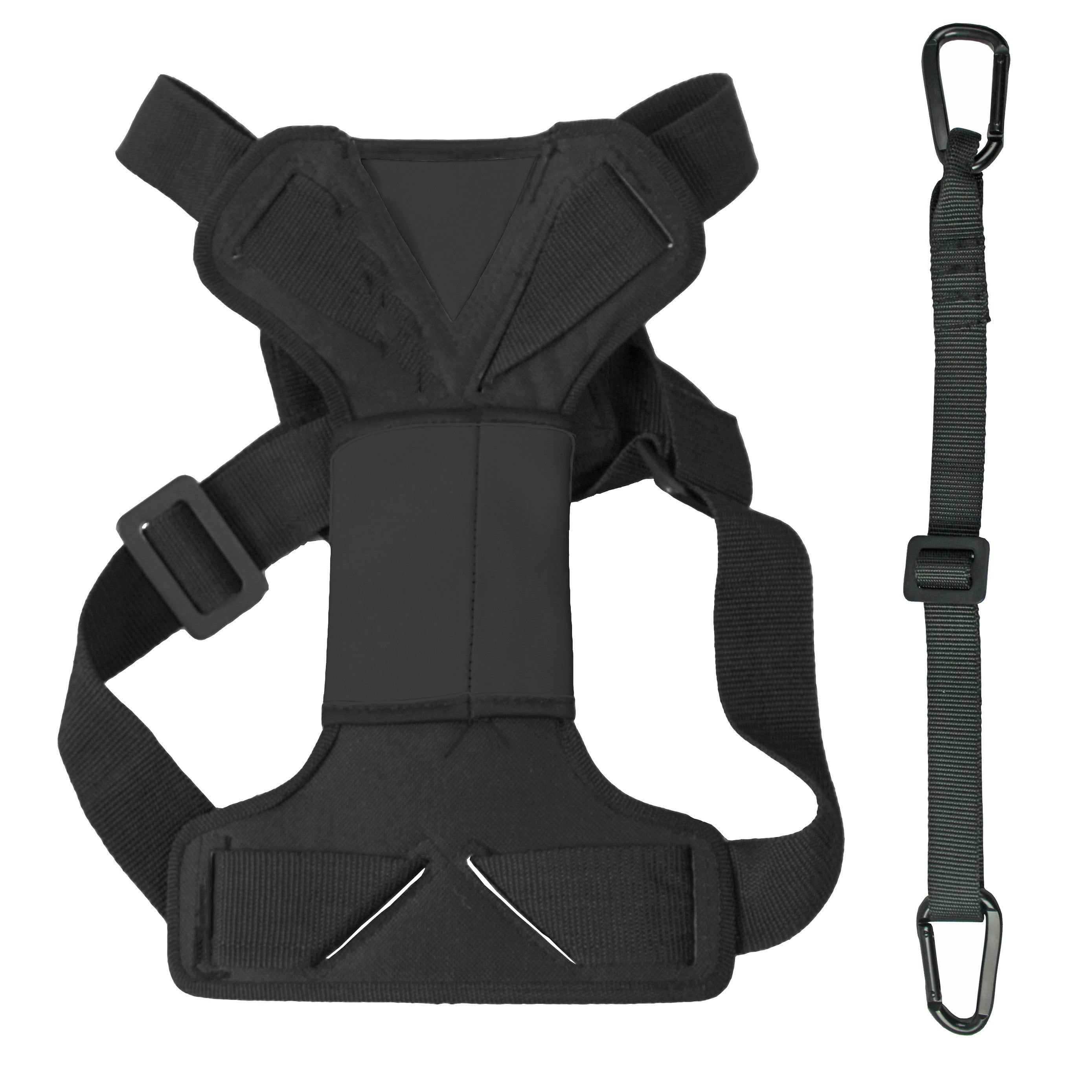 4.Harness features adjustable straps and is composed of durable oxford Nylon and Neoprene for superior strength