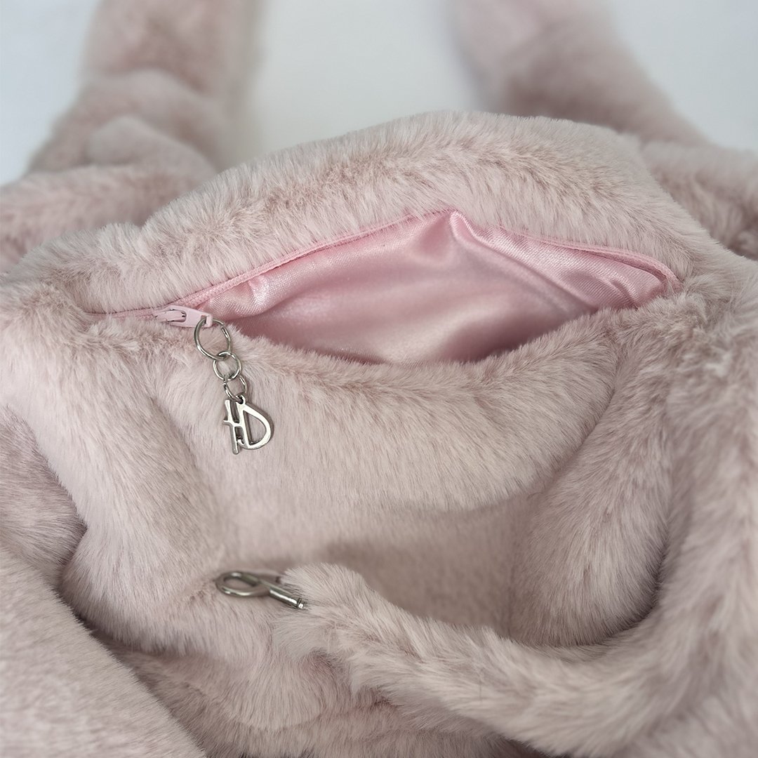 "The Divine Dog Carrier by Hello Doggie is the perfect accessory for pet owners looking for a comfortable and stylish way to carry their furry baby. Made with high quality faux fabric that emulates the plush feel of mink fur, ensuring your pet stays cozy and relaxed during your trips together. The interior is spacious and lined with soft material, a tether to keep your baby secured. Featuring a satin pocket with YKK zippers, it is perfect for storing small essentials like treats, waste bags, or your keys. The ultra mink faux fabric adds a touch of luxury to the carrier, making it a fashionable accessory for any pet owner. With its sleek design and beautiful color options this carrier stands out in a crowd and complements any outfit. One Size    15"" L x 6"" W x 10"" H | For dogs up to 7lbs   MSRP $264.00 Limited Edition  *Carriers are handmade, sizes may vary slightly. Made in USA"