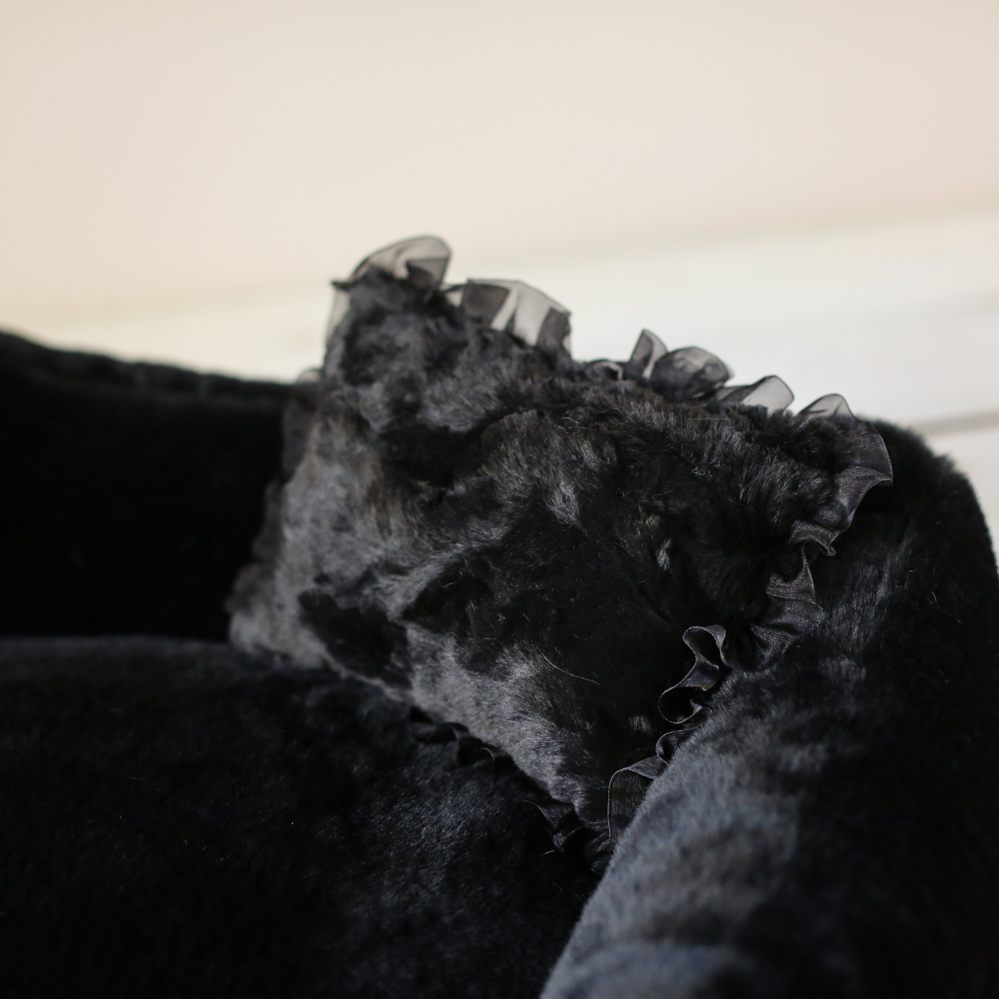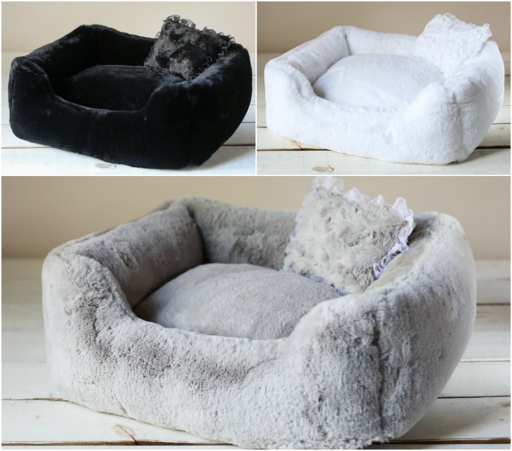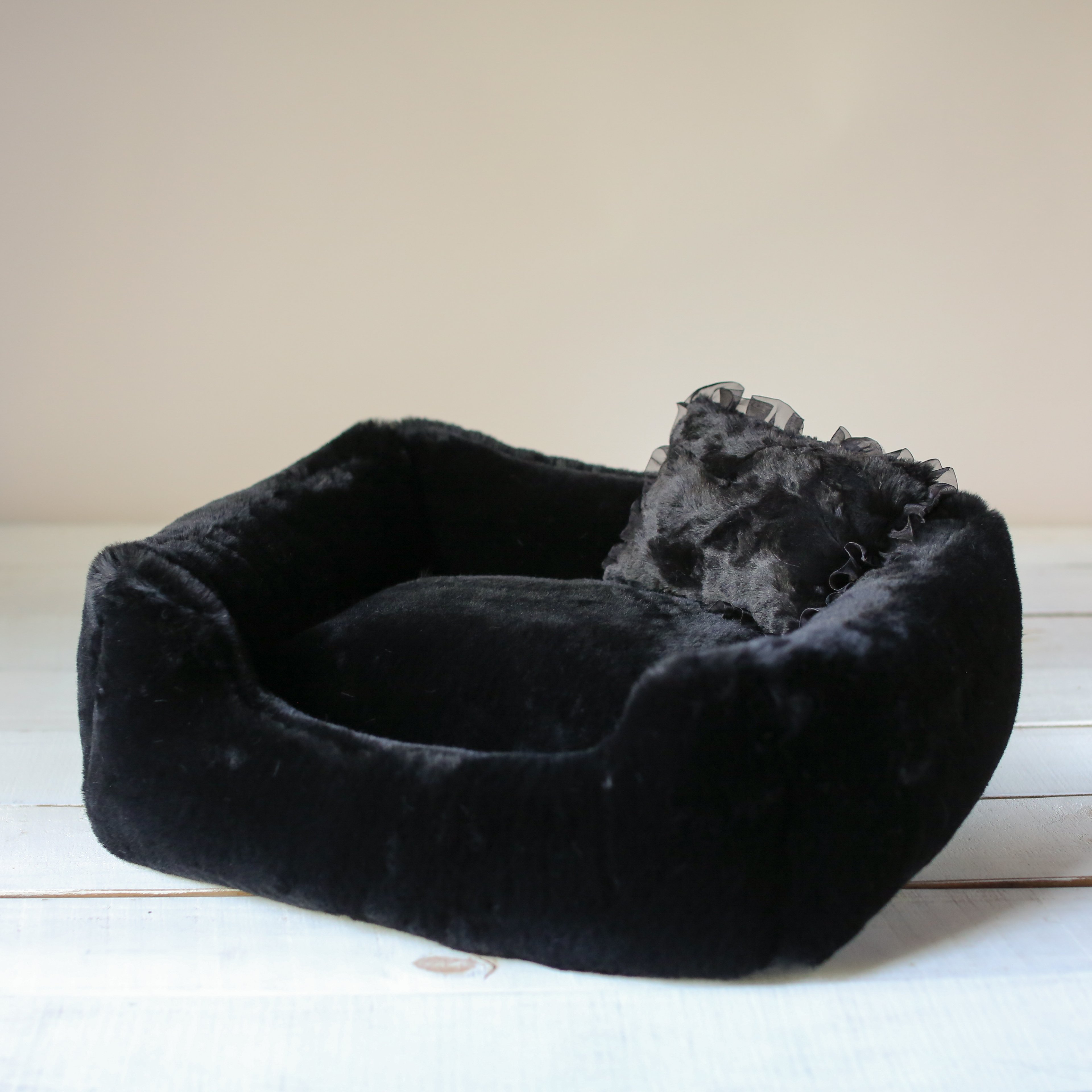 Hello Doggie is excited to debut our new luxurious Divine Bed. Made with only the softest, most luxurious high-end fabric, any pup would dive right into this bed to enjoy a long slumber. The overstuffed pillow allows your pampered pooch to sink into bliss while the low bolster front allows for easy access. The Divine Bed is machine washable in cold water with mild detergent on a delicate cycle, air dry or air fluff with no heat but for best results we recommend dry cleaning. One Size   |   Made for up to 20 lbs Outside - 16" L x 19" W x 7" H   |   Inside - 14" L x 17" W MSRP - $196.00 *Bed is handmade in the USA and sizes may vary slightly. Made in USA.