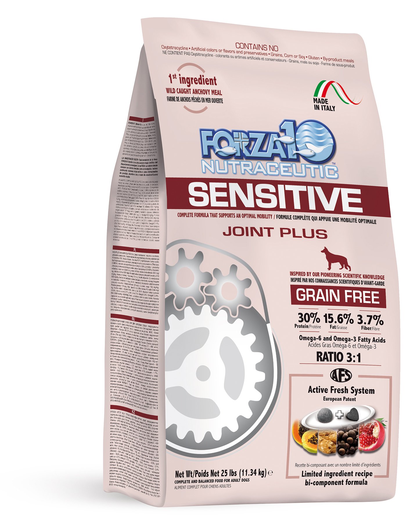 Anchovy Meal, Peas, Fava Beans, Pork Meal, Fish Oil (Preserved With Mixed Tocopherols), Hydrolyzed Salmon Protein, Hydrolyzed Fish Protein, Hydrolyzed Potato Protein, Minerals (Calcium Carbonate, Dicalcium Phosphate, Zinc Sulfate, Copper Amino Acid Complex), Choline Chloride, Fructooligosaccharide (Fos), Vitamins (Vitamin E Supplement, Ascorbic Acid, Vitamin B12 Supplement, Vitamin A Supplement, Calcium Pantothenate, Riboflavin Supplement, Pyridoxine Hydrochloride, Thiamine Mononitrate, Folic Acid), Yucca Schidigera Extract, Chondroitin Sulfate, Glucosamine, Dried Rose Hips, Papaya, Turmeric, Pomegranate, Black Pepper, Rosemary Extract.
